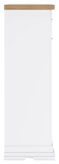 Casual style with substance. This two-tone chest of drawers raises the bar on comfortably cozy design in your soothing sanctuary. A sturdy silhouette with a classic white finish and black metal hardware exudes modern farmhouse vibes. The butcher block oak veneer top adds a relaxed aesthetic. And this charmingly curated piece is spacious enough for all your essentials.