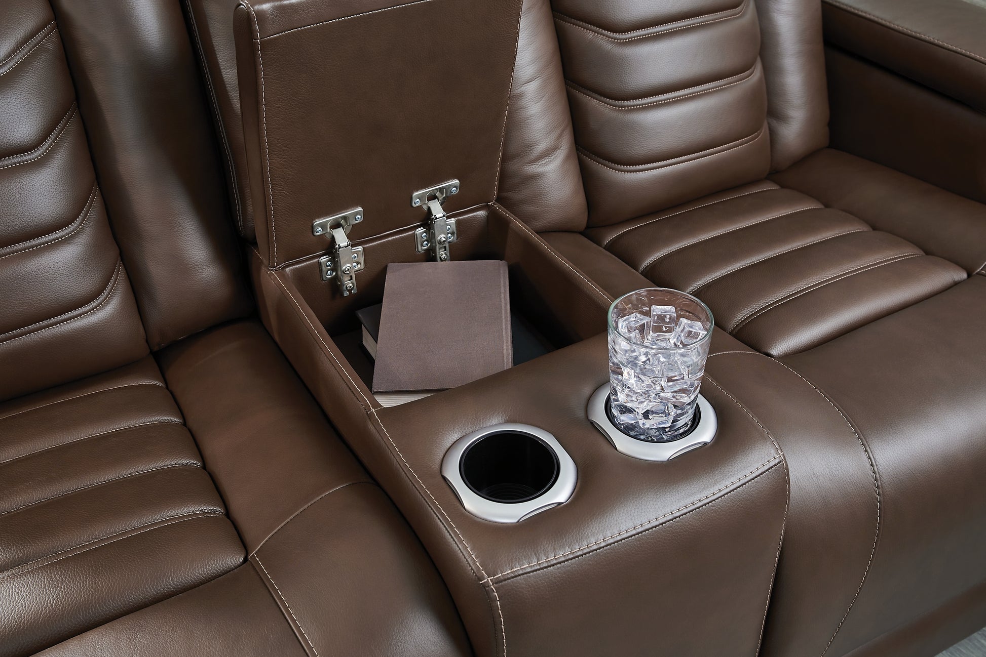 Details | One-touch power control with adjustable positions, Easy View™ adjustable headrest and zero-draw USB port, Zero-draw technology only consumes power when the USB receptacle is in use, Zero-gravity mechanism allows optimum reclining comfort with infinite reclining positions at the touch of a button, Easy View™ adjustable headrest puts your head and neck in optimum position for reading or watching TV even if you're fully reclined, Extended ottoman for enhanced comfort, Corner-blocked frame with metal reinforced seat, Attached cushions; high-quality foam cushions wrapped in poly fiber, 100% top grain leather covers inside areas such as the back, seat and arm cushions; skillfully matched faux leather covers the remaining areas, Due to its natural origin, real leather can show individual characteristics such as healed scars, growth marks, grain variation and shade variation, Natural variations make each hide unique and do not detract from the wearing qualities of leather, Storage armrests with 2 cup holders; center console with 2 cup holders and hidden storage, USB charging, Power cord included; UL Listed | |