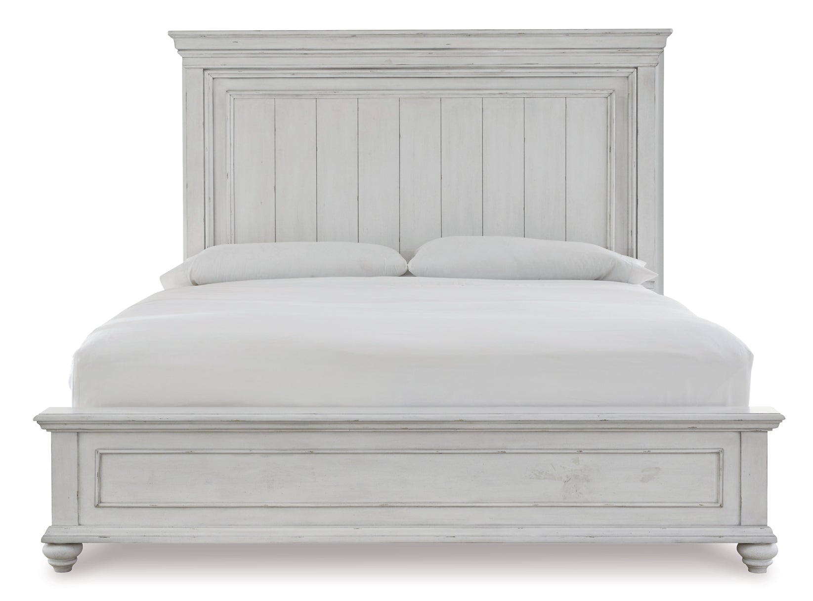 | Details | Includes queen panel headboard, footboard and rails, Made with solid wood, veneers and engineered wood, Distressed whitewash finish, Foundation/box spring required, sold separately, Mattress available, sold separately, Assembly required | |
