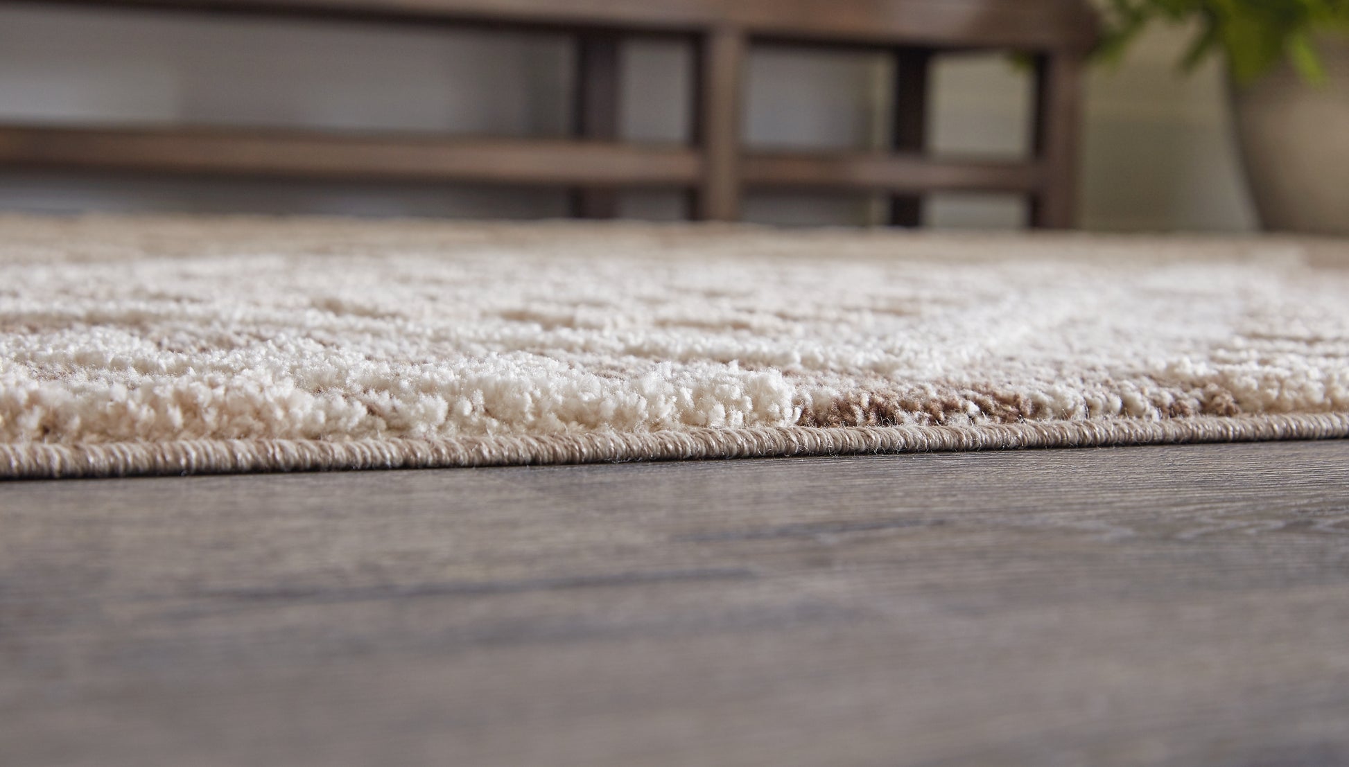 Details | Made of polyester shrink yarn/polypropylene frieze blend, Machine woven high-low pile, 10mm pile, Backed with jute, 3" braided tassel edge, Spot clean only, Rug pad recommended, Imported | |